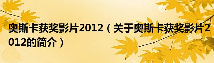 本文關(guān)于奧斯卡獲獎(jiǎng)影片2012的簡(jiǎn)介就講解完畢,希望對(duì)大家有所幫助。