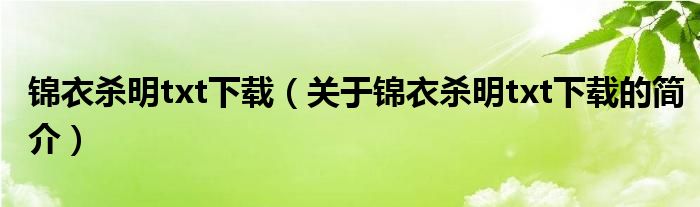 本文關于錦衣殺明txt下載的簡介就講解完畢,希望對大家有所幫助。
