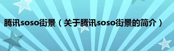 騰訊soso街景(關于騰訊soso街景的簡介)