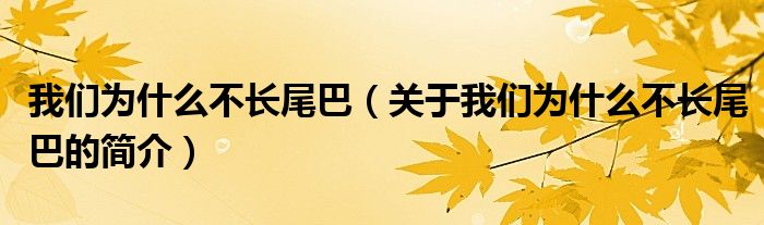 大家好,我們為什么不長尾巴,關于我們為什么不長尾巴的簡介很多人還不知道,現在讓我們一起來看看吧!