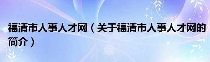 本文關于福清市人事人才網的簡介就講解完畢,希望對大家有所幫助。