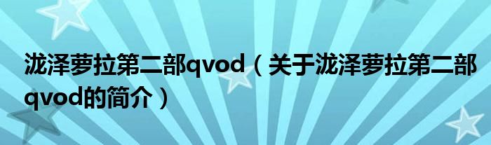 本文關于瀧澤蘿拉第二部qvod的簡介就講解完畢,希望對大家有所幫助。