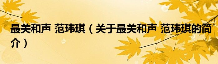 本文關于最美和聲 范瑋琪的簡介就講解完畢,希望對大家有所幫助。