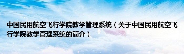 本文關于中國民用航空飛行學院教學管理系統的簡介就講解完畢,希望對大家有所幫助。