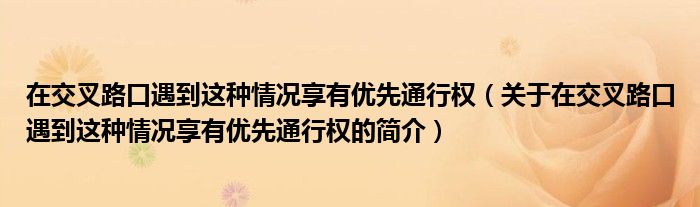本文關于在交叉路口遇到這種情況享有優(yōu)先通行權的簡介就講解完畢,希望對大家有所幫助。