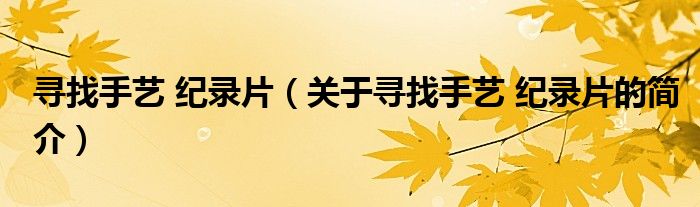 本文關于尋找手藝 紀錄片的簡介就講解完畢,希望對大家有所幫助。