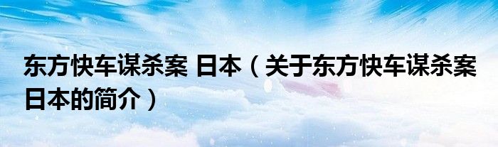 本文關于東方快車謀殺案 日本的簡介就講解完畢,希望對大家有所幫助。