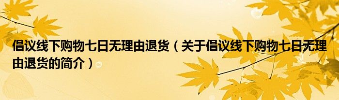 本文關(guān)于倡議線下購(gòu)物七日無理由退貨的簡(jiǎn)介就講解完畢,希望對(duì)大家有所幫助。