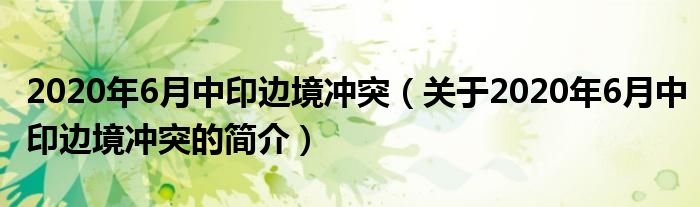 大家好,2020年6月中印邊境沖突,關(guān)于2020年6月中印邊境沖突的簡介很多人還不知道,現(xiàn)在讓我們一起來看看吧!