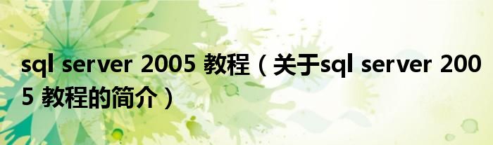本文關于sql server 2005 教程的簡介就講解完畢,希望對大家有所幫助。