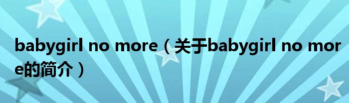 大家好,babygirl no more,關(guān)于babygirl no more的簡介很多人還不知道,現(xiàn)在讓我們一起來看看吧!