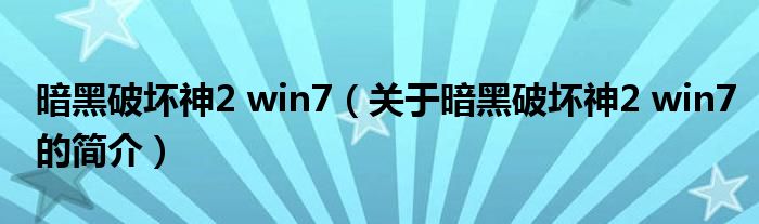 本文關于暗黑破壞神2 win7的簡介就講解完畢,希望對大家有所幫助。