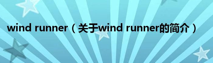 大家好,wind runner,關于wind runner的簡介很多人還不知道,現在讓我們一起來看看吧!