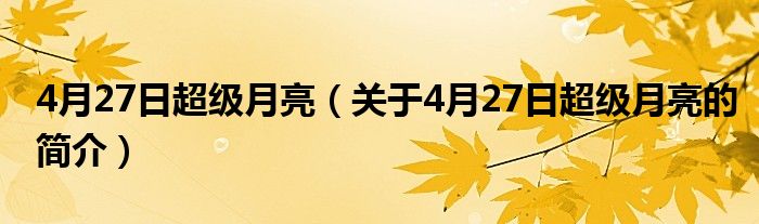 大家好,4月27日超級月亮,關于4月27日超級月亮的簡介很多人還不知道,現在讓我們一起來看看吧!
