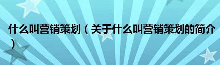 本文關于什么叫營銷策劃的簡介就講解完畢,希望對大家有所幫助。