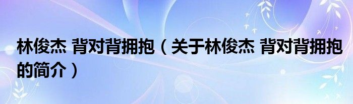 大家好,林俊杰 背對背擁抱,關于林俊杰 背對背擁抱的簡介很多人還不知道,現在讓我們一起來看看吧!