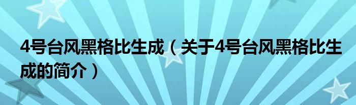 本文關于4號臺風黑格比生成的簡介就講解完畢,希望對大家有所幫助。
