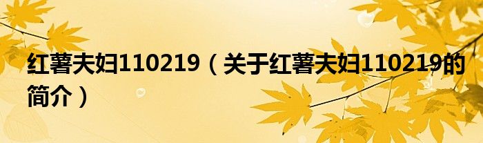本文關于紅薯夫婦110219的簡介就講解完畢,希望對大家有所幫助。