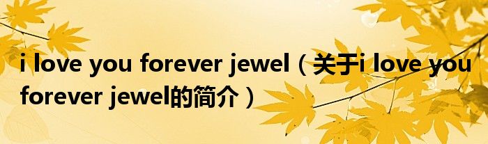 大家好,i love you forever jewel,關于i love you forever jewel的簡介很多人還不知道,現在讓我們一起來看看吧!