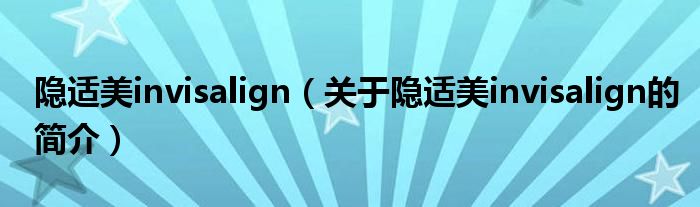 本文關于隱適美invisalign的簡介就講解完畢,希望對大家有所幫助。