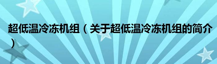 本文關于超低溫冷凍機組的簡介就講解完畢,希望對大家有所幫助。