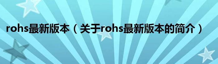 大家好,rohs最新版本,關于rohs最新版本的簡介很多人還不知道,現在讓我們一起來看看吧!