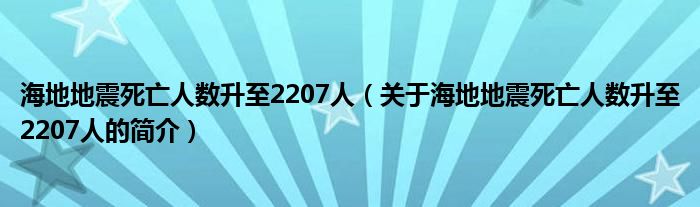 本文關(guān)于海地地震死亡人數(shù)升至2207人的簡介就講解完畢,希望對(duì)大家有所幫助。