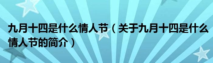 本文關(guān)于九月十四是什么情人節(jié)的簡(jiǎn)介就講解完畢,希望對(duì)大家有所幫助。