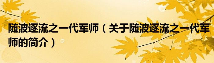 隨波逐流之一代軍師(關于隨波逐流之一代軍師的簡介)