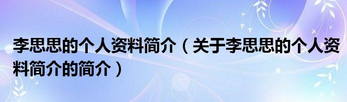 本文關(guān)于李思思的個人資料簡介的簡介就講解完畢,希望對大家有所幫助。