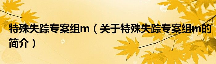 本文關于特殊失蹤專案組m的簡介就講解完畢,希望對大家有所幫助。