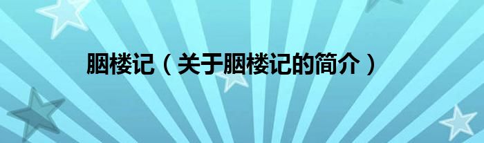 大家好,胭樓記,關(guān)于胭樓記的簡(jiǎn)介很多人還不知道,現(xiàn)在讓我們一起來(lái)看看吧!