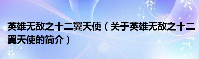 大家好,英雄無敵之十二翼天使,關(guān)于英雄無敵之十二翼天使的簡介很多人還不知道,現(xiàn)在讓我們一起來看看吧!