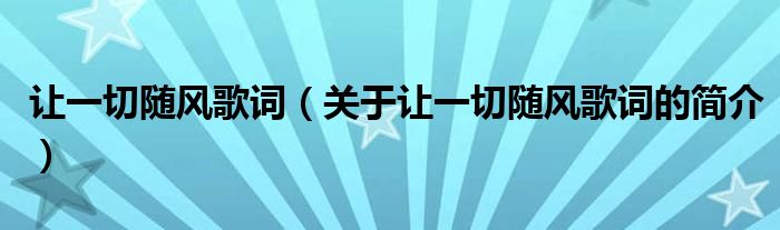 本文關于讓一切隨風歌詞的簡介就講解完畢,希望對大家有所幫助。