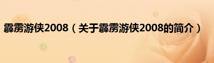 大家好,霹靂游俠2008,關于霹靂游俠2008的簡介很多人還不知道,現在讓我們一起來看看吧!