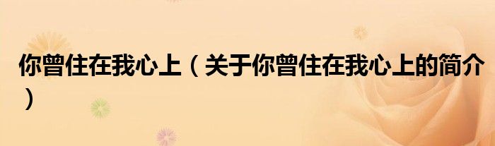 大家好,你曾住在我心上,關(guān)于你曾住在我心上的簡(jiǎn)介很多人還不知道,現(xiàn)在讓我們一起來看看吧!