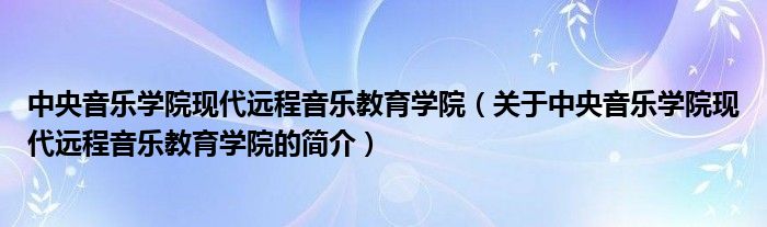 本文關于中央音樂學院現代遠程音樂教育學院的簡介就講解完畢,希望對大家有所幫助。
