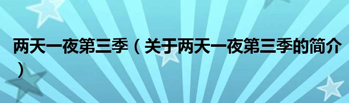 本文關于兩天一夜第三季的簡介就講解完畢,希望對大家有所幫助。