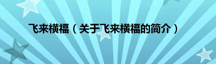 大家好,飛來橫福,關于飛來橫福的簡介很多人還不知道,現在讓我們一起來看看吧!