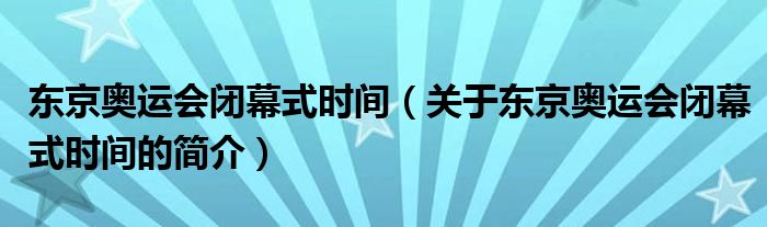 本文關于東京奧運會閉幕式時間的簡介就講解完畢,希望對大家有所幫助。