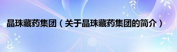 本文關于晶珠藏藥集團的簡介就講解完畢,希望對大家有所幫助。