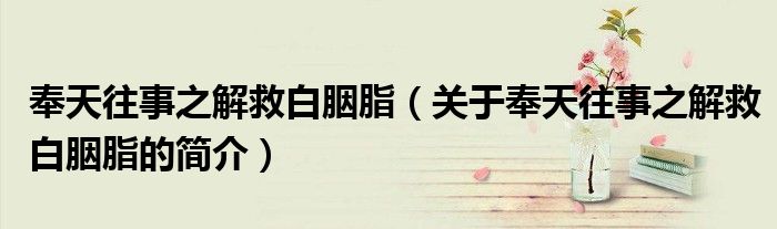 本文關于奉天往事之解救白胭脂的簡介就講解完畢,希望對大家有所幫助。