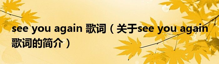 本文關于see you again 歌詞的簡介就講解完畢,希望對大家有所幫助。