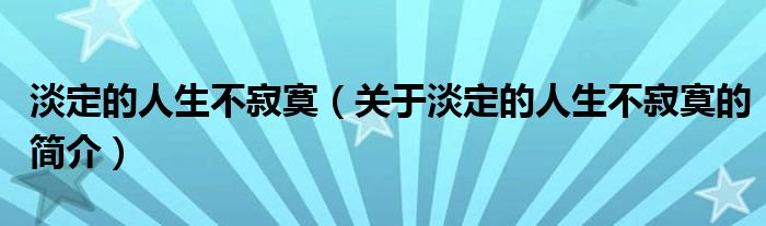 大家好,淡定的人生不寂寞,關(guān)于淡定的人生不寂寞的簡介很多人還不知道,現(xiàn)在讓我們一起來看看吧!