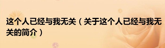 大家好,這個人已經與我無關,關于這個人已經與我無關的簡介很多人還不知道,現在讓我們一起來看看吧!
