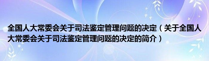 大家好,全國人大常委會關于司法鑒定管理問題的決定,關于全國人大常委會關于司法鑒定管理問題的決定的簡介很多人還不知道,現在讓我們一起來看看吧!