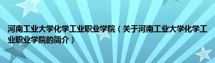 本文關于河南工業大學化學工業職業學院的簡介就講解完畢,希望對大家有所幫助。