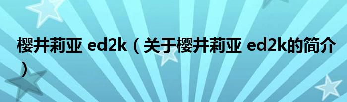 本文關于櫻井莉亞 ed2k的簡介就講解完畢,希望對大家有所幫助。