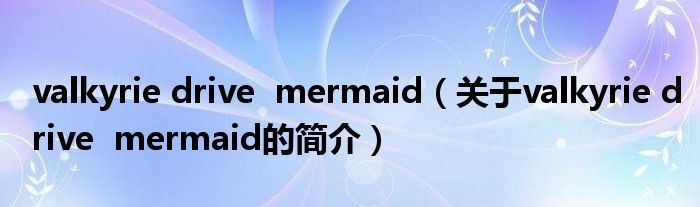 本文關(guān)于valkyrie drive mermaid的簡介就講解完畢,希望對大家有所幫助。