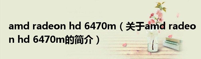 本文關(guān)于amd radeon hd 6470m的簡介就講解完畢,希望對大家有所幫助。